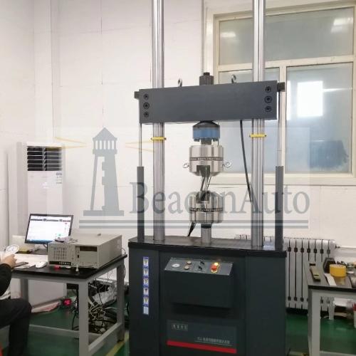 微機控制電液伺服動靜疲勞試驗機主要單元部分: l 50Kn高剛度主機:1套; l 21MP、90L/min、120L/min、170/min恒壓伺服泵站(油源):1套; l MTSD900全數(shù)字伺服控制系統(tǒng):1套; l MTSDP單通道動靜態(tài)試驗軟件包:1套; l 測量相關(guān)傳感器 1套(力、位移) l 壓縮附具:1套; l 管片道槽定制工裝 1套(根據(jù)用戶提供產(chǎn)品圖紙設(shè)計) l 計算機、打印機:1套; l 管路、配件、工具等:1套; l 高溫爐 一套 微機控制電液伺服動靜疲勞試驗機主要技術(shù)指標。 1、試驗力單元: l Z大動靜態(tài)試驗力:±50KN; l 有效測量范圍:全程不分檔1%—100.%FS; l 靜態(tài)試驗力示值精度:小于±0.5%;動態(tài)試驗力示值精度:小于±1.0%; l 試驗力平均負荷波動度:小于±1%; l 試驗力動態(tài)負荷波動度:小于±1%; 2、位移單元: l 系統(tǒng)Z大位移:不小于±75mm(總行程不小于150mm); l 動靜態(tài)示值精度:±0.5%FS; 3、作動器指標: l 作動器有效行程:不小于±150mm(總行程不小于200mm); l Z高工作壓力:21MPa; l Z大試驗力±10KN;±20KN;±50KN;±100KN; l 前法蘭連接,安裝在上橫梁上方 5、試驗頻率及振幅:0.1~30Hz;(幅頻特性不同、可選擇匹配不同流量液壓站) 6、主要試驗波形:正弦波、方波、三角波、斜波、半正弦、半三角、各類組合波形。 7、試驗工裝; 輔具根據(jù)試件尺寸和試驗方法定制工裝; 帶預(yù)應(yīng)力調(diào)整環(huán)以消除間隙; 8、壓縮附具: l 壓盤直徑φ150mm l 與底座和傳感器接頭配套設(shè)計 9、液壓油源參數(shù): l 壓力:21Mpa; l 流量:90L/min、120L/min、170/min l 功率:380V 22kW l 油箱凈容積260L; 幅頻特性 頻率 | 5HZ | 10HZ | 20HZ | 30HZ | 振幅 | ±5 | ±3 | ±2 | ±1 |