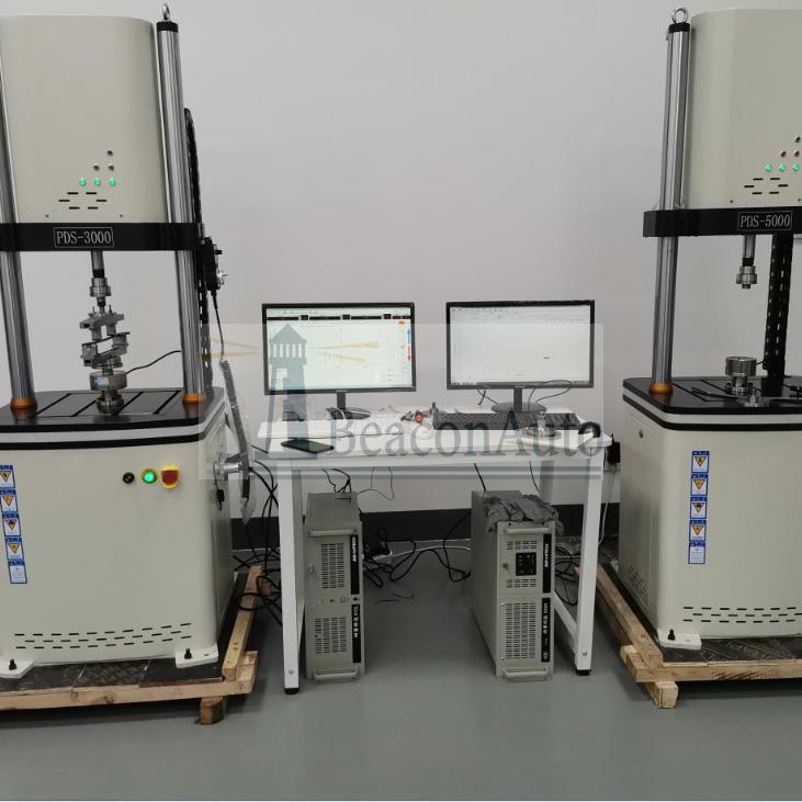 PDS3000微機伺服動靜態疲勞測試系統 1.系列產品簡介: PDS3000微機伺服動靜態疲勞測試系統既能進行動態的高、低周疲勞試驗、程序控制疲勞試驗,也能進行靜態的恒速率、恒應變、恒應力控制下的試驗和各種常規的力學性能試驗,還可進行斷裂力學試驗,也可以對廣義范圍上材料或構件的疲勞壽命、裂紋擴展、斷裂韌性性能測試、實際試件的安全性評價、工況模擬等,因此有著其它任何種類的試驗機所不能比擬的優勢,是國際疲勞力學研究領域界ZUI推崇的材料試驗設備。 由于該系統采用自適應無間隙的電動伺服作動器,頻響速度快,噪音低,節能環保,非常適合企業和研究機構對小零部件的研究測試! 2.微機伺服動靜態疲勞測試系統優勢特點: ?無需油源的直線電機技術,保證潔凈的測試環境 ? 軸向通道采用Can總線式控制方式 ? 高速直線作動器 ? 獨特的驅動器軸承系統,確保由于樣品和夾具的偏移或是有側向力情況下,加載鏈仍處于對中狀態 ? 適用于各種材料和元器件的動靜態測試 ? 高動態性能,頻率zui大可達50 Hz ? ±3000N zui大動態軸向載荷 ? 光學編碼器用于精確的數字位移控制,及對試樣的變形控制。 ? 單相電源驅動,無需額外液壓油源、冷卻水、氣動空氣 ? 基于業內先進控制方式的數字控制器 ? 高剛度、精確對準的雙立柱加載框架與位于橫梁上的驅動器 ? Dcell 先進載荷傳感器技術,實現更快測試,減少慣性差 ? 靈活多樣的T型臺底座,適用于裝配各種規則/不規則的夾具和樣品 ? 儀器設計緊湊簡潔 – 機架占地面積不到0.5 m2 微機伺服動靜態疲勞測試系統方案描述: