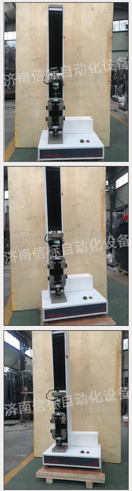 金屬材料壓縮彎曲實驗口罩塑料拉伸強度試驗機主要功能及特點: 1、主機: 1.1調速系統采用伺服電機和自主研發減速系統,性能穩定可靠,具有過流、過壓、過載等保護裝置。調速范圍可達0.05~500mm/min。 1.2傳動部分采用圓弧同步齒形帶,精密絲杠副傳動,傳動平穩,噪音低,傳動效率高。 1.3萬向節采用十字插銷結構,而且具有擺角限制功能,一方面便于試樣夾持,保證試驗同心度,另一方面很好的消除了不規則試樣對傳感器的影響。 2、控制系統、操作軟件及數據處理系統 2.1計算機控制系統,具有集成度高、性能穩定、調整方便等優點??梢詫嶒灁祿M行實時采集,對實驗特性曲線實現實時動態顯示,試驗數據文件能以Access常用數據庫或SQLserve大型數據庫的方式保存,方便實現客戶的資源共享及網絡管理,以及用戶的再分析。對于用戶自定義的各種word2000報表,該軟件可輕松實現訪問,解決了不同用戶或同一用戶在不同時期對試驗報表有不同需要的難題。該軟件可處理試驗力、位移、時間、變形的原始數據及由此派生的曲線。