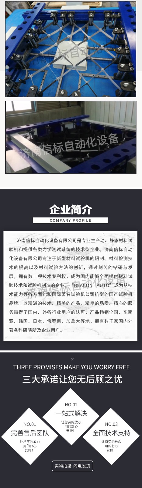 | 濟(jì)南信標(biāo)自動(dòng)化設(shè)備有限公司主要生產(chǎn):動(dòng)靜態(tài)萬(wàn)能疲勞試驗(yàn)機(jī),接骨板彎曲試驗(yàn)機(jī),縫合線拉伸疲勞試驗(yàn)機(jī),髖膝關(guān)節(jié)磨損試驗(yàn)機(jī),電子萬(wàn)能試驗(yàn)機(jī)、液壓萬(wàn)能試驗(yàn)機(jī)、巖石三軸、四軸,電液拉力試驗(yàn)機(jī),材料試驗(yàn)機(jī),高低溫蠕變,高低頻疲勞,拉伸、扭轉(zhuǎn)、杯突等二十多個(gè)系列兩千多個(gè)的品種。 |