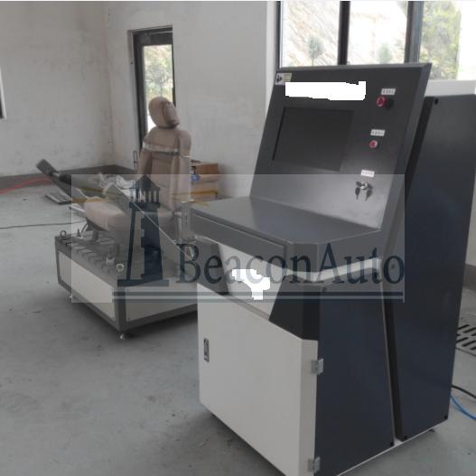 汽車座椅調角器沖擊耐久性試驗機 1、概述 汽車座椅調角器沖擊耐久性試驗機設備用于測試座椅調角器工作耐久性,調角器沖擊耐久性,回位力矩。 本試驗臺結構簡單,性能穩定,操作方便,安全可靠,采用自動加力、自動計時,多項目耐久測試,到達設定試驗時間后自動停止測試,自動記錄試驗數據,并繪制曲線等功能。 特別聲明: l 本簡介概述不能作為向本公司提出任何要求的依據 l 本公司保留對本簡介概述的解釋權 l 本公司保留在滿足客戶要求的基礎上變更設計的權利 l 該設備的制造嚴格按照國家標準進行。本方案的制訂僅代表我公司能制造該設備。為保證客戶方和我公司的的信息保密,雙方需要妥善保存及處理好相對應的技術資料或提供的試驗標準。在未經雙方同意時,所涉及的技術資料及試驗標準嚴防外泄。 2、汽車座椅調角器沖擊耐久性試驗機依據標準 ? QC/T 844-2011 《乘用車座椅用調角器技術條件》 ? JT/T 460-2005 《客車座椅靠背調角器技術條件》 3、 型號說明 TJNJ-02-------------汽車座椅調角器耐久性能試驗臺 4、 汽車座椅調角器沖擊耐久性試驗機試驗項目 座椅調角器工作耐久性 5、主要參數 4.1拉壓力傳感器:250N,精度0.2% 4.2擺臂轉動角速度:0.87-3.49rad(10)/s; 4.3轉動角度:±90°(以垂直地面為0°);調角器解鎖行程:0-100mm ; 4.4轉動頻率:0-10次/分鐘 ;帶鎖0-5次/分鐘(中間開鎖位置越多越慢); 4.5工作電壓功率:380V,2.5Kw,恒壓干燥氣源輸出≤0.8MPa 4.6可對試驗過程中的力值及行程等參數進行實時監控及試驗過程中的數據保存,并可出據試驗報告 5、汽車座椅調角器沖擊耐久性試驗機性能特點 5.1本設備融合國家座椅相關標準內容,結合客戶企業相關標準進行增加改進。本試驗臺采用易裝夾式結構,采用框架結構及鈑金噴塑殼體,結構穩定,適用于各種不同種類的座椅總成的手動調角器以及類似產品進行動作疲勞測試; 5.2擺動部分采用伺服電機搭配行星減速機作為動作執行源,伺服電機的優點是位置及角度控制較好,搭配減速機將擺動速度降低,將擺動扭矩升高; 5.3擺臂中心與座椅調角器中心不同心問題,圓周運動時對應線性容易造成卡滯,我們經過反復研討,確定運用雙光軸定位,雙滾珠軸承螺母導向,調心軸承組連接使調軸不同心時,對對應線性進行補償,達到圓周擺動效果; 5.4可進行自動回彈式座椅的疲勞試驗和非自動回彈式座椅的疲勞試驗,可對自動回彈式座椅是否回位進行反饋; 5.5執手開啟機構,實現機械限位與光電限位配合模式,防止開鎖力過大對整體機構進行過沖性破壞; 5.6可對轉動實時扭矩進行監控,對極限值進行采集并且記錄;